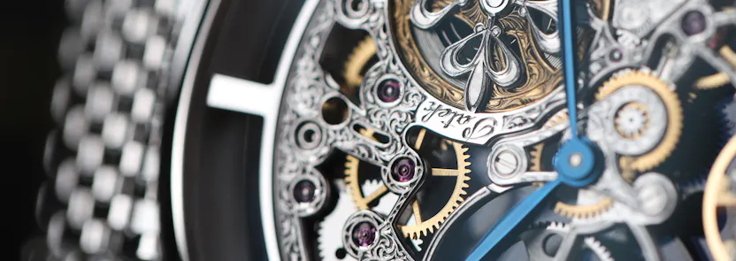 Over 130 hours are spent engraving nearly every surface on both sides of the movement. The volutes, arabesques, and individual lines of engraving create a visual presence where each master engraver leaves their signature in their technique. The (second) best thing you can own when you have this watch is a loupe, as it allows a deeper appreciation of the skeletonization, decoration, and engraving techniques.