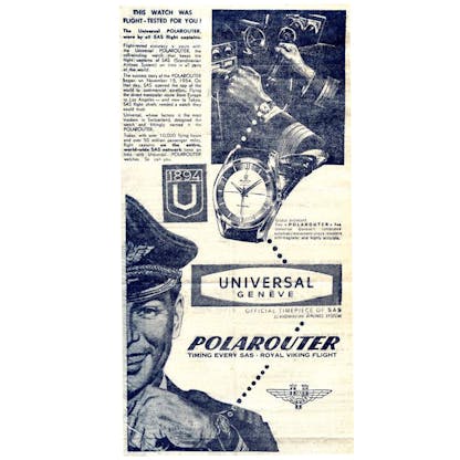 On November 14th, 1953, SAS began flying from Copenhagen to LA directly over the polar circle, cutting flight time down from 36 to 22 hours. Upon landing at LAX, the flight crew was given the first Polerouters that featured SAS on the dial. These specific models are some of the most highly sought-after vintage watches in the world, with only a few hundred surviving to this day.