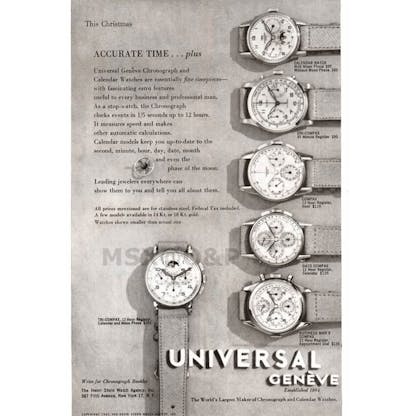 In 1894, Universal Genève was established in Le Locle, Switzerland, originally named Universal Watch. The brand’s journey included a transition to Universal Genève in the 1930s, gaining recognition for its chronographs, particularly the Compax line.