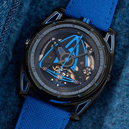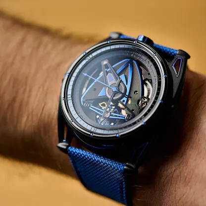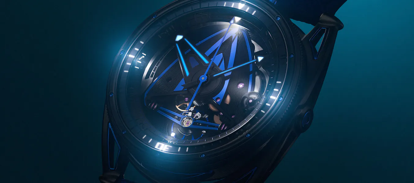De Bethune’s DB28GS Swordfish, with its electro-mechanical illumination system, is now in a deep sea-dark, blackened zirconium case.