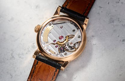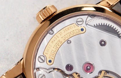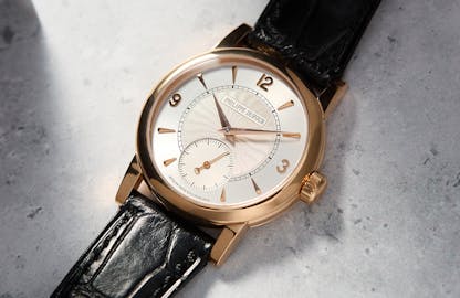 The quality of the watch does not just show in its appearance – it shows in the experience of handling, wearing, and winding it as well. The click spring, for instance, which ratchets against the teeth of the mainspring barrel’s ratchet wheel, is so beautifully formed that like the rest of the watch, it transcends its own functionality to become an object of immense formal beauty. But it also sounds and feels incredible, making winding the watch an intense visceral and sensual pleasure. You can make a perfectly serviceable click spring out of a bent wire and it’ll work just fine (that’s how the Valjoux/ETA 7750’s click spring is made) but if there ever were a demonstration of the fundamental truth that it’s not what you do, it’s how you do it, it’s a Dufour Simplicity.