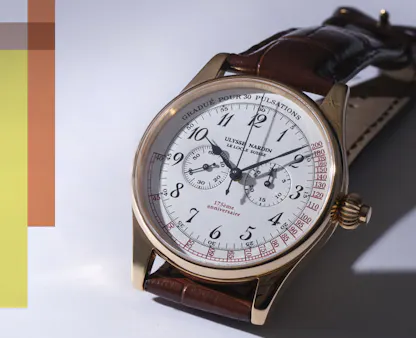 With all of the louder and more ostentatious offerings to come from the Ulysse Nardin collections over the years, there’s a cool and calm composure from this 175th anniversary monopusher chronograph that I can’t help but love. Its case profile is slender, and its diameter modest—the piece only measures 37mm across, which is impressive for a modern monopusher. Only 175 of these special pieces were made in yellow gold for the 175th anniversary of Ulysse Nardin in 1998, alongside the same count in white gold and pink gold.