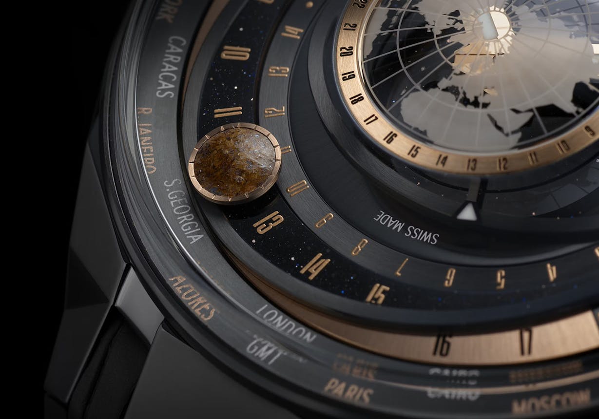 When it comes down to it, fitting the universe into a watch is perhaps not so much a problem of scale as one of precision. To remain accurate and not seize up, watchmaking mechanisms have to operate on a regular basis, whereas some planets take several decades to rotate; no gear train can stay immobile for timescales of this magnitude, start moving again, and work as it was intended to. Watchmakers are thus constantly striving to design a movement that’s as accurate as possible – and then moving on to try again with the next version.