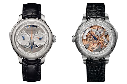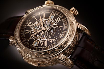 Meanwhile, Patek Philippe, another independent firm, has hewn as closely as possible to the etiquette of traditional fine watchmaking. Its iterations of the astronomical watch are rare and exceptional, the most recent being the Grande Complication 6002R, while its second-most complicated wristwatch is the Sky Moon Tourbillon (Ref. 5002), launched in 2001. This rare, double-face piece features a Moon Phase as well as sidereal time and a star chart, on which the apparent movement of the Moon and stars in the northern hemisphere is displayed.