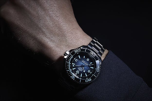 The use of high-tech metals also began to figure more heavily in the collection, with an all-titanium version released in 2016 and an all-ceramic Si3N4 version with a titanium dial introduced in 2023. But perhaps the biggest technical coup came in the form of the 2019 Seamaster Planet Ocean Ultra Deep Professional, a watch that survived a descent to the Challenger Deep, located at 10,935m below sea level. This special prototype model was turned into a series of regular-production watches in 2022 with the release of the Omega Planet Ocean Ultra Deep 6000M. Produced from Grade 5 titanium and Omega’s proprietary O-MEGASTEEL, this impressive diver is rated to a stunning 6,000m.