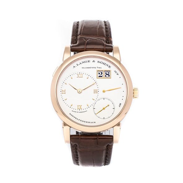 For those looking for something other than a black dial, the A. Lange and Sohne Lange 1 is simplistic and formal. The rose gold case surrounds a silver dial. While the watch features, hours, minutes, small seconds, large date and a power reserve indicator, it is all formal in style with thin rose gold hands and small indices.
