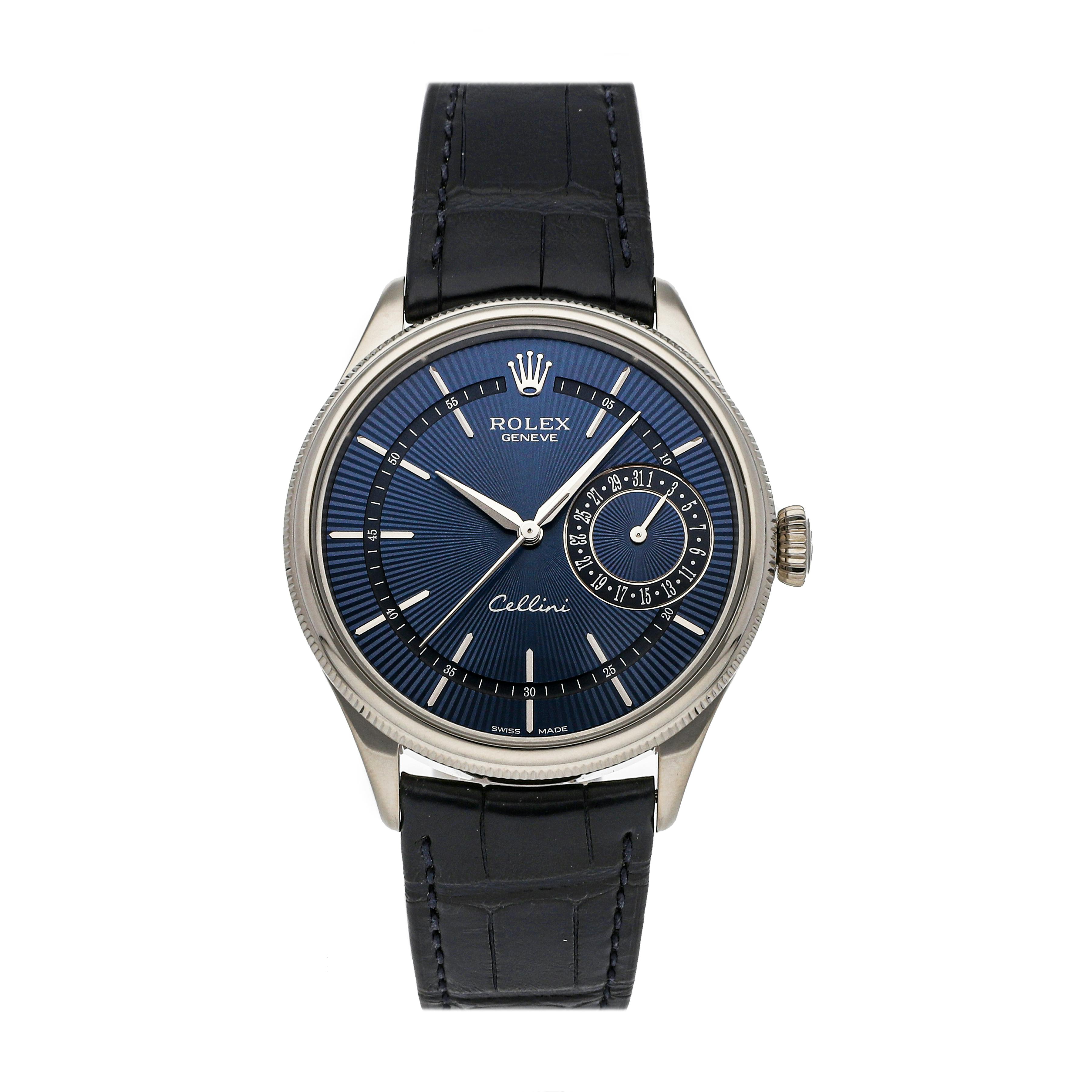 From a brand that is known for its sports watches, Rolex offers the Cellini for those looking for something more formal. There are quite a few modern variations of the model, but the dark blue guilloche dial makes this an elegant modern watch. The white gold bezel is also both domed and fluted. The model is slightly thicker than most dress watches at 12.4mm thick.