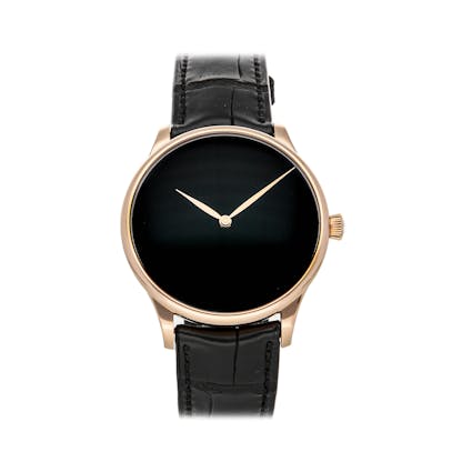 Taking dress watches with simple functions to the next level is the H. Moser & Cie Venturer. This particular model features a black dial surrounded by a rose gold case. The unique, and perhaps most formal aspect of the models, is that there are neither hour markers nor a brand logo on the dial. Watch Tim’s full hands-on review to learn about all the unique details to this dress watch.