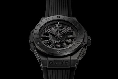 Surface treatments aside, certain materials are naturally black already. Carbon is one of them, with some grey highlights. Countless brands have used it, but some pieces stand out in particular; one is the TAG Heuer’s highly atypical creation for Only Watch, a carbon reinterpretation of its iconic and extremely rare ‘Dark Lord’ Monaco that combines an avant-garde design and cutting-edge materials – most notably a carbon hairspring, one of TAG Heuer’s specialties.