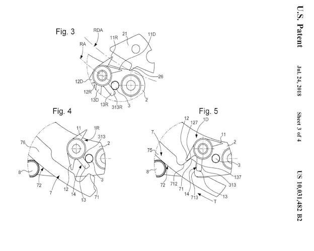 Naturally the mechanism is protected by a patent – there are a total of 21 patents associated with the watch. The above drawings show another perspective on the quarter strike system for selecting the melody, as well as (lower image) a closer view of the trips, or lifts.