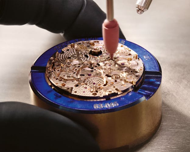 There has been a sort of reassessment of evaluating fine finishing in recent months among enthusiasts, propelled by the growing realization that it’s possible for CNC and other automated machine tools to produce consumer ready finished surfaces with little or no human intervention – and, moreover, that the idea that sharp internal corners, at least, cannot be machine made, turns out to be largely untrue. The consensus thus far is that if a brand is really hand finishing a movement, they’ll show you and Blancpain has showcased considerable handwork as the final stage in the creation of the Grande Double Sonnerie, prior to final assembly.