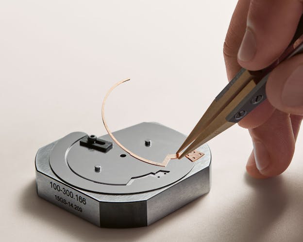 The governor consists of a central rotor, with two wing shaped plates held close to the axis of the rotor by two C-shaped springs. The plates are made of silver, and when the watch begins to chime, the rotor begins to spin, causing the wings to extend and interact with small but powerful permanent magnets on rings just above and below the rotor itself. This induces what is called an eddy current in the rotor plates, which in turn produces a magnetic field that opposes the fields of the permanent magnets (Grand Seiko’s Spring Drive works in a similar fashion, although in that case, the magnets are electromagnets and the induced braking force is controlled by the quartz timing package). The system is almost totally silent. In order to prevent any magnetic interference with other components in the watch, the governor sits inside an antimagnetic housing, although the most potentially vulnerable component – the balance spring – is made of amagnetic silicon.