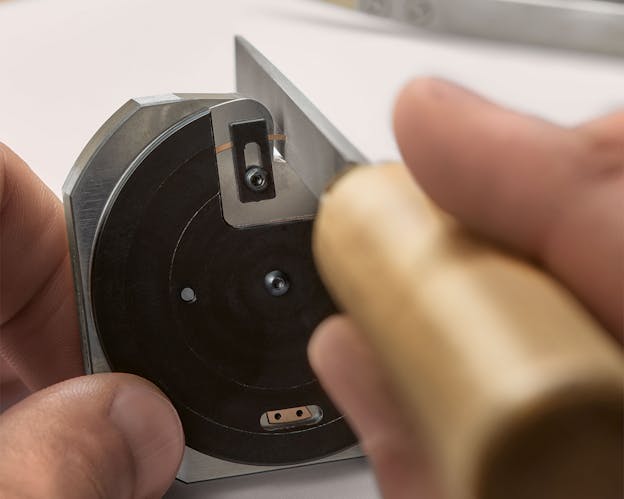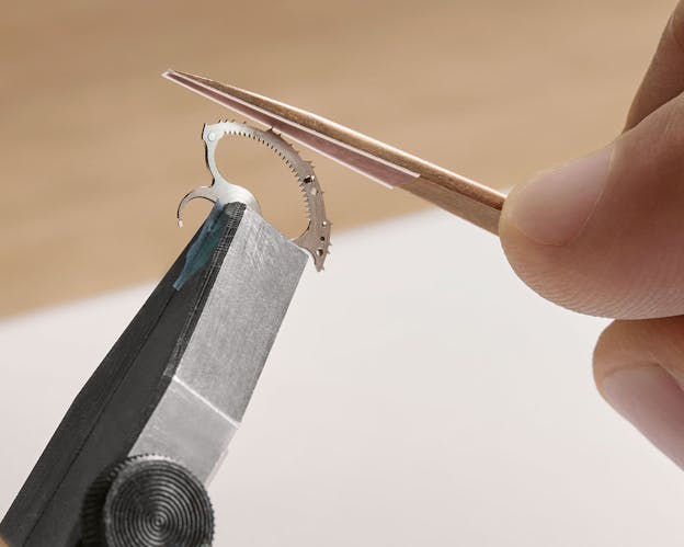 The tips of the teeth of the quarter rack are also filed by hand to adjust timing – the tolerance for tempo is a precision of 5/100 of a second.