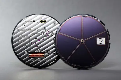 The actual photoelectric cell is under the paper dial, and so the energy to power the watch is harvested from the small amount of light that falls through the translucent paper.