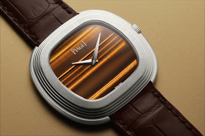 Perhaps no historic manufacture embodies the embrace of stone dials and natural materials quite like Piaget, the Swiss firm founded in 1874 and headquartered in Geneva. In 1964, Piaget launched a series of watches with dials machined from onyx, turquoise, lapis lazuli, and other natural stones, expanding its offerings when it debuted its famous Polo model in 1979. These pieces proved extremely popular — Andy Warhol, who owned a gold Piaget cuff watch with a tiger’s eye dial, was a fan — and came to define the look of high-end watchmaking during the 20th century’s grooviest decade. (The Rolex Day-Date with “Stella” dial, another popular natural-stone model, was also born in the 1970s.)