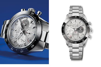 In 2021, Zenith’s Chronomaster Sport proved that the Le Locle-based maison had more to offer than just handsome reimaginings of its historical back catalog. Offering modern sports watch aesthetics and modern proportions with the brand’s signature El Primero automatic movement, the Chronomaster Sport has since been produced in myriad guises — perhaps none more arresting than a new version with a meteorite dial. Featuring a naturally-occurring Widmanstätten pattern that gives each example a special structure and striations, the watch is complemented by tri-color chronograph registers in silver, light grey, and anthracite.
