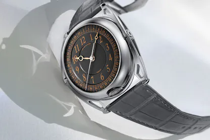The new version is identically technically, but very different aesthetically, and now features an anthracite dial decorated with guilloché.