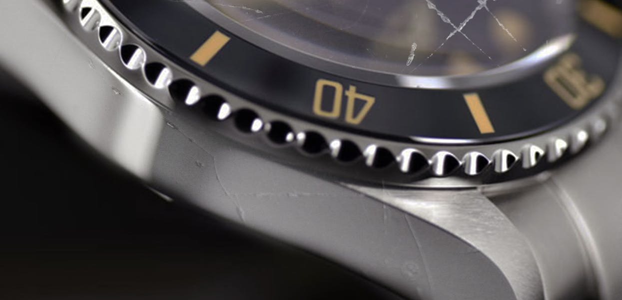 Metal condition on most watches relates to components such as the case, bezel, bracelet, crown(s), and clasp. The most common defects in these components are scratches and dents.
