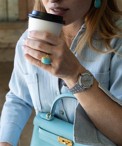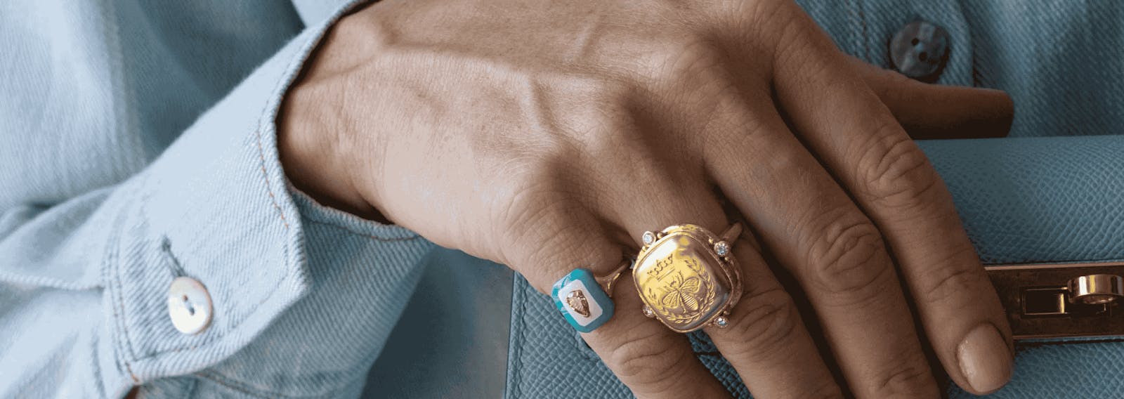 Nodding to Roman and Greek intaglios, each Elizabeth Locke intaglio is hand-carved, imparting a true uniqueness that matches the individual wearing them. Ancient coins, often dating back thousands of years, are sourced from across the globe, further reinforcing the brand’s connection to a larger-than-now narrative.