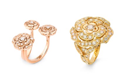 Jewelry was always close to her heart. She was known for draping herself in ropes of pearls and bold pieces. She adored costume jewelry and once declared, “Jewelry is not made to give women an aura of wealth but to make them beautiful.” When introducing fine jewelry in 1993, Chanel looked directly to her iconography: stars, the zodiac, lions, flowers, and, of course, her fashion designs. One of the most famous is the Camélia collection, which features beautiful camellia flowers — the designer’s favorite. She was so enamored with the blossom that she wore silk and real camellias pinned onto her clothes. She adored the camellia’s quiet elegance; the flower has no scent, which allowed her beloved Chanel No. 5 fragrance to stand out. Today, the Camélia collection includes everything from minimalist bracelets to diamond-set sautoirs and high-jewelry masterpieces.