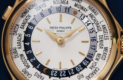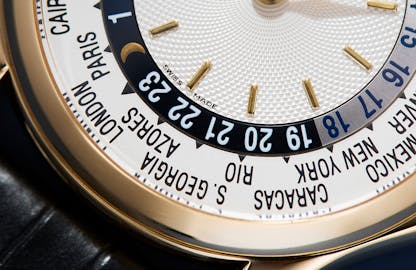 There are any number of watches which use some form of the world time complication, and in addition to its classic form, there are all sorts of hybrids which offer dual or multiple timezone complications which often bear a cosmetic resemblance to a real world time complication, but which don’t offer its full functionality. The classic form, as you might call it, began with the invention of the world time complication for watches in 1931, when the Genevan watchmaker Louis Cottier produced his first world time watch – a pocket watch – for a retailer named Baszanger (Baszanger was based in Carouge, a suburb of Geneva, which is where Cottier had his workshop). Patek Philippe’s production of world time watches, like all true world timers, is based on the Cottier system but when Patek launched the reference 5110 in the year 2000, it was with an update to the design that was totally original to Patek and which no one had ever seen before.