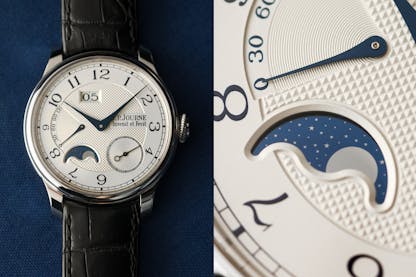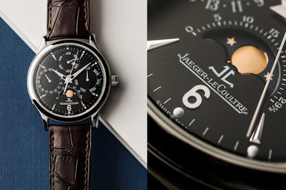 Before we finish this list, a classic perpetual calendar had to make the cut. The JLC Master Perpetual Calendar may not be as highly sought after as some of those from Patek, Lange, or others, but the value proposition of this perpetual calendar is pretty much unrivaled in the category. The slender 37mm gem may not be a record-breaking ultrathin, but its proportions are spot on for a classic dress watch. Speaking to its moonphase complication, in this steel execution with a black dial, the gold and blue moonphase stands out in just the right way.