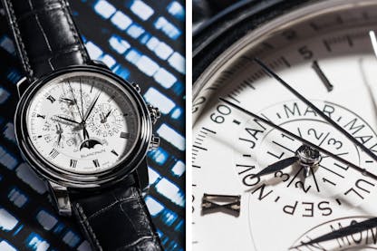 From this initial sale, the next big change came with actual series production. In 1941 Patek Philippe came to market with a pair of perpetual calendars (one with a chronograph attached) in the form of reference 1526 and 1518. In both configurations, the design codes we often see today were already present—a day and month window at 12 o’clock, and a pointer date sundial at six. Over the course of 12 years, roughly 210 of the reference 1526 were produced before being replaced by the larger 37.6mm Calatrava cased reference 1527. This was seen as a pretty big step up from the original reference’s 34mm dimensions.