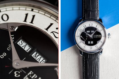 After dabbling in both the classic and contemporary classes of perpetual calendars, the F.P. Journe Octa Quantième Perpétuel enters the conversation with the intent of blurring those lines entirely. In terms of movement finishing and case design, this watch obviously has traditional roots, however both its dial and functions are anything but traditional. It’s one of very few to use a dual disc date complication, but what’s more impressive is the timing of the instantaneous jump of ALL calendar elements at midnight. During R&D, Journe invested in high-speed video capture equipment in order to properly test and time these things. OCD? Perhaps, but totally worth it and worthy of appreciation.
