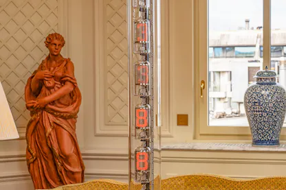 When I saw the Space Time Blade in Geneva a couple of things struck me. The first is that the images on the Only Watch website really don’t convey the visual and physical impact of the Blade – set on a table, the Blade proper and its pedestal tower above you and have such a pronounced visual and physical presence that you really need something like the ornate suites at the Beau Rivage Hotel Geneva to counterbalance it. The second was that if I had the Blade in my home I would be terrified of someone eventually knocking it over – however, the Blade has a pretty low center of gravity thanks to the mass of the base, and while accidents certainly can happen, it’s not quite as precarious as it looks. The third, was that ideally you would really have an entire lifestyle that goes along with the Blade – it requires a certain kind of room, which of course, necessitates a certain kind of house, and probably a particular kind of estate and as someone joked while I was there, probably a secret James Bond villain-esque nuclear submarine base in a lagoon inside an extinct volcano or something. I won’t have this problem, to say the least.
