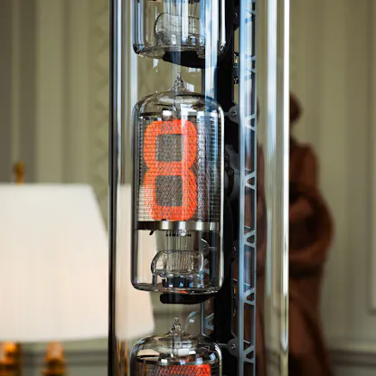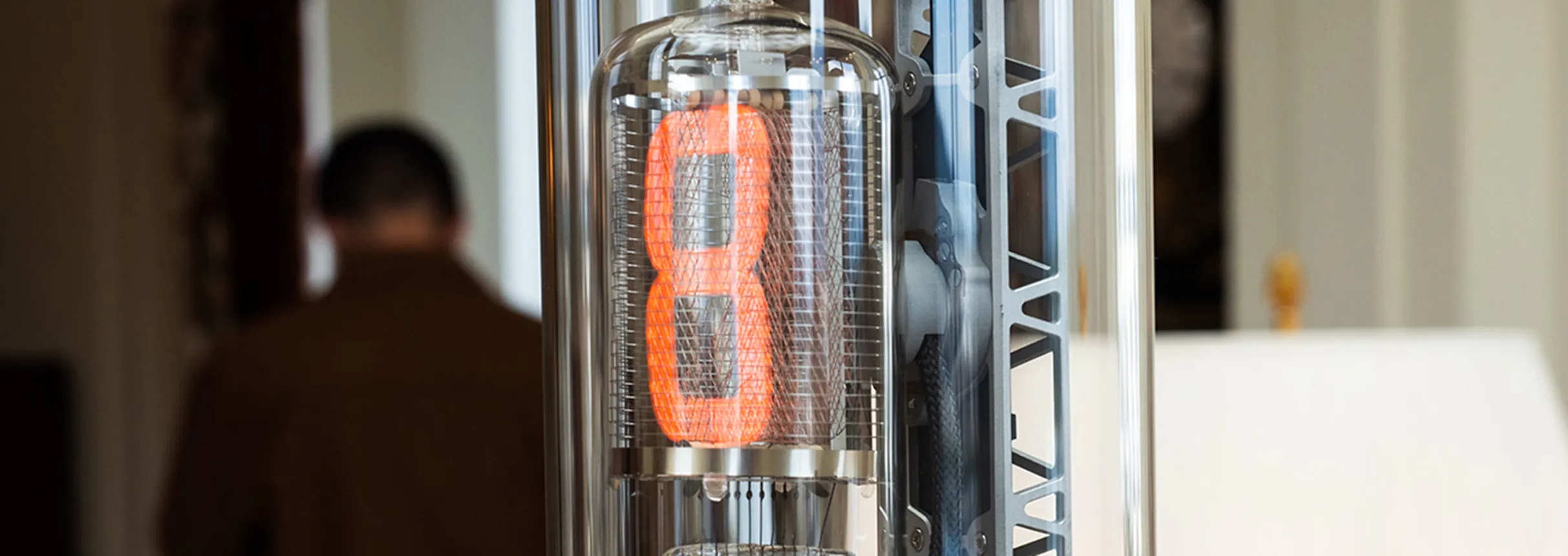 This brings us back around to the subject of cathode poisoning. The cure for cathode poisoning is to make sure that the cathodes all cycle through an energized state on a regular basis and through a combination of meticulous quality control, as well as “regularly exercising all the cathodes in a tube” you can significantly extend the lifespan of a Nixie display tube, as Farny explains in an article on Nixie tube health. With a pre-programmed cycling procedure the life of Farny’s Nixie tube displays can be extended to up to 20 years and the tubes themselves can be easily replaced, as they have a simple, plug-in multi-pin base.