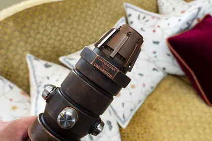 The Space Time Blade is a clock, but it’s also much more. There are several different display modes, controlled with a remote that also looks like the handle of a lightsaber, albeit it would have had to be constructed by a Jedi Knight (or maybe Sith Lord) with a taste for a distinctively steampunk aesthetic.