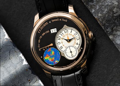 The F.P. Journe UTC was the first F.P. Journe timepiece that caught my eye. The UTC piqued my interest in the F.P. Journe brand; the small dial, large date, and large time zone earth indicator were such a far cry from everything else on the market. This watch, to me, is one of the perfect examples of independent watchmaking. The 120-hour power reserve keeps the watch running (even if your jet lag causes you to sleep for 20 hours) and the visual display of the earth and time zones is a unique feature that very few watches utilize. I find this display of the time zone especially beautiful to look at and quite a unique and interesting watch within the realm of dual time zone watches. The UTC looks just as good ensuring you make your tee time at Pebble Beach as it is at ensuring that you don’t miss your après ski drinks in Chamonix.