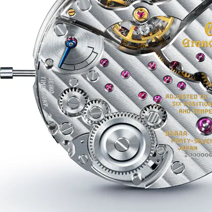 According to Grand Seiko, the 9SA4 is definitely not just a 9SA5 with the rotor and automatic winding train removed. GS says that “nearly 40%” of the movement has been redesigned, with special attention paid to creating a pleasantly tactile winding experience.