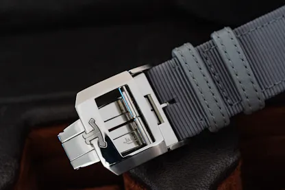There are a couple of strap options, including the canvas strap shown, and a textured rubber strap, both of which work with the double deployant clasp, which is also very well made. The same attention to detail shown on the dial and case carries over to the clasp, with brushed finish on the JLC logo contrasting with the mirror polishing on the rest of the clasp components.