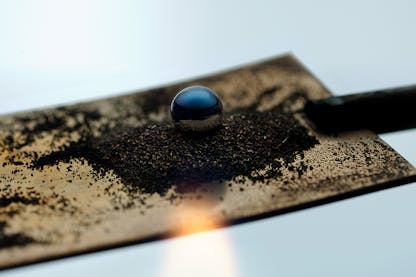 More than a feat of engineering, this moonphase reflects an artisan’s touch. Each sphere is comprised of two hemispheres: one of steel, and one of precious metal palladium. When joined, the two halves form a uniformly silver sphere. Only when heated over a bed of brass shavings with flame from an oil lamp does the steel hemisphere oxidize to its ultimate deep blue luster.