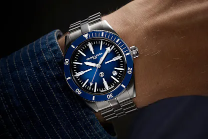 The new collections are the Deep Blue Revival and Deep Blue Renaissance diver’s watches, which are water resistant to 300M; the Sea Sky Chronographs, which take their design cues from the 1970s and are 100M water resistant chronographs; and the Chief Chronograph and Chief Date models, which are the most contemporary in the collection, with integrated stainless steel bracelets. All the new models use movements from La Joux Perret – the caliber G100 for the time and date models, and the chronograph L112 for the chronographs.