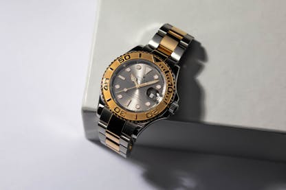 Softened edges, hints of a move towards larger case sizes, and a new approach to materials defined the era, and no one was spared this aesthetic. Even Rolex (notoriously consistent in its design language) bent the knee slightly in the direction of the era’s rounded tendencies. When Rolex introduced the Yacht-Master in 1992, it set itself apart from the Submariner not only with its use of precious metals but by replacing the crisp angles found on the classic Oyster-cased dive watch with radiused transitions, and an overall less toolish look.