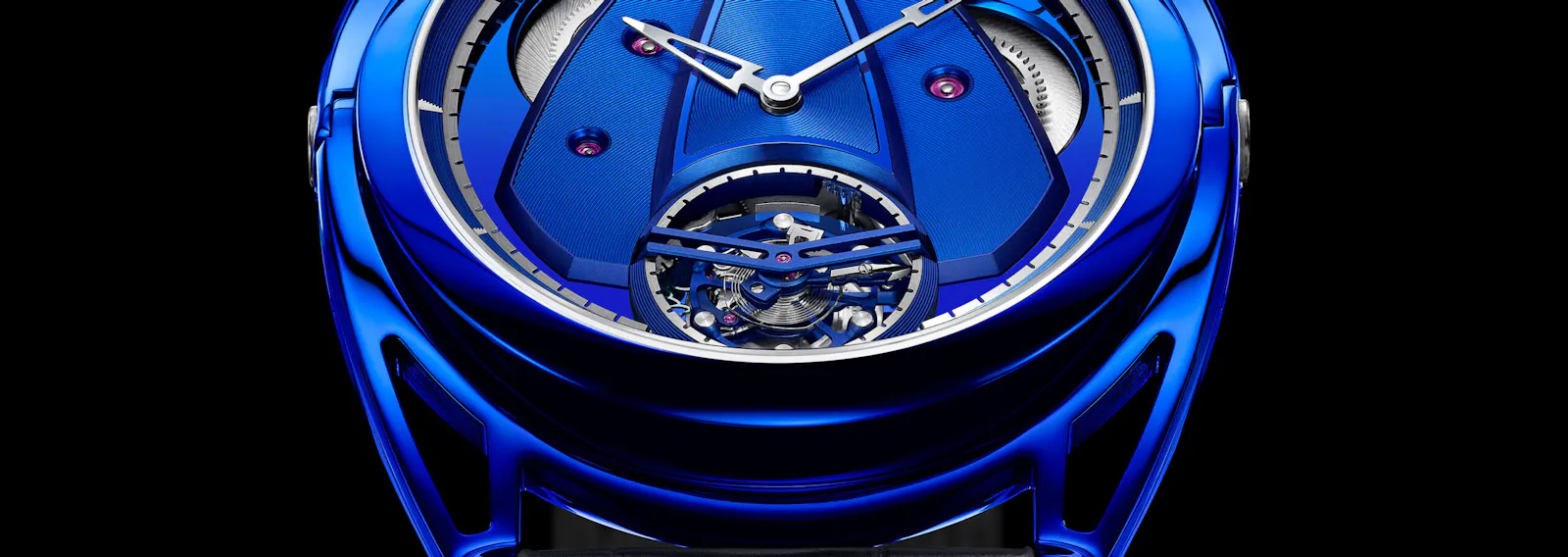 While the new DB25xs Starry Seas models have fixed lugs, the DB28xs Kind Of Blue Tourbillon has the floating, or articulated, lugs found on the other DB28xs models (and indeed, on DB28 watches in general). The case essentially sits inside the floating lugs, which are only connected to the case proper at the pivot points, and the lug system means that any De Bethune watch which has this system is apt to be more versatile than usual in terms of wrists on which it comfortably be worn.