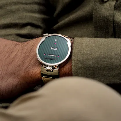 Dubai Watch Week brings people together, but it’s also primarily an opportunity for enthusiasts, collectors, and brands to join in launching and viewing a whole plethora of new timepieces, often with a design that reflects the location of the exhibition in one of the most dynamic markets for watches in the world. De Bethune’s latest piece is a new version of the DBD, which was introduced in its first incarnation in 2006. The latest version for Dubai Watch Week features the same in-line triple calendar, with a new green dial.