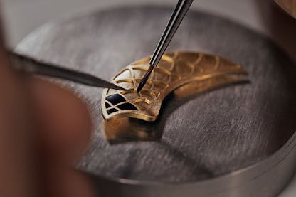The creative director for the project, Marie Boutteçon, has created designs in the past for clients such as Christophe Claret and Parmigiani Fleurier, and is no stranger to the exotic crafts deployed in the Cabinet of Wonders watches – her father, Jérôme Boutteçon, is a wood marquetry master who has created watches for Patek Philippe.