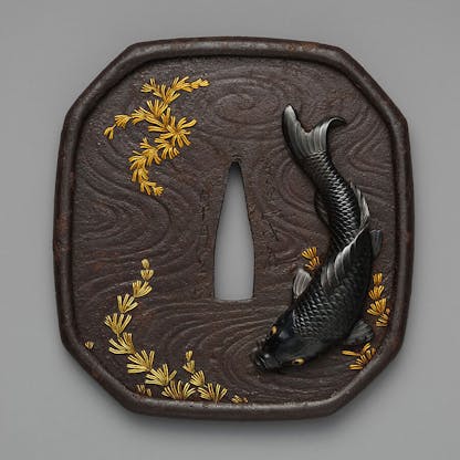He collected a wide variety of objects, and among these were an enormous number of tsuba – the handguards found on Japanese swords. The Japanese sword is generally and I think rightly perceived as an austerely pure object, but both swords and scabbards had a number of sometimes very beautifully and elaborately crafted mountings. Characteristically, the makers of Japanese swords did not distinguish between the physical and functional aspects of their work, and Gaston-Louis Vuitton’s collection included over 800 examples.