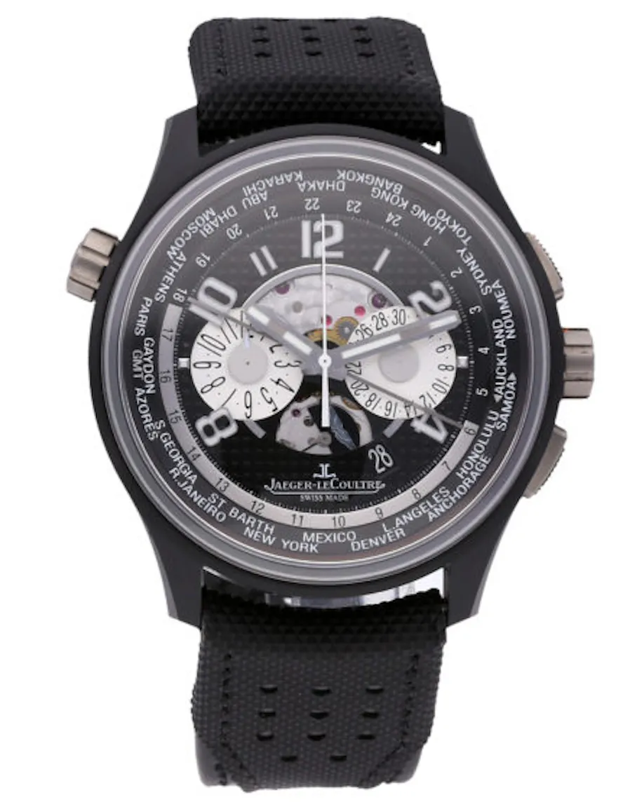 What most people do not know is that The Amvox Chronograph is a collaboration between Jaeger LeCoultre and Aston Martin. Therefore, like most of the Amvox collection, dials and straps are reminiscent of Aston Martin car panels and leather upholstery. In this case, The dial is inspired by an Aston Martin grill, with a slight view of the movement within. The high-tech 44mm ceramic case is a blend of zirconium and yttrium oxides, that’s exposed to extreme pressure and temperatures before being formed with special diamond-tipped tools.