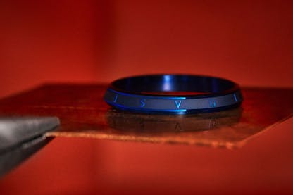 There are other clear differences as well. The case is a Tambour-style case (the Tambour collection at Louis Vuitton, as the name implies, have drum-shaped cases which are widest at the back and narrow at the bezel) and the case and bezel in the Louis Varius are both in heat-blued titanium; the wide base of Tambour cases generally makes them a good match for larger and complicated watches, as the widest part of the case is closest to the wrist.