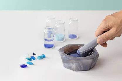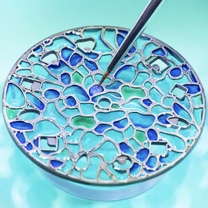 Translating the Wisteria lamp design into a watch involved creating a dial also made of glass – however, in the watch the glass is fired or vitreous enamel. Enamel is prepared by grinding the glass into a very fine powder in a mortar and pestle and then applying it to a metal surface; if the areas of enamel are separated by walls of flattened gold wire, you have cloisonné enameling (probably the most common type of enameling found in watches) and if the enamel is deposited in shallow engraved cells, you have champlevé enameling.