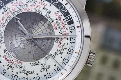 There are a few workarounds. One of the more common is to simply have an indication on the dial of a world time watch which shows which cities observe DST – usually the city name is in a different color, to make it easier to distinguish from cities where DST is not in effect. Vacheron Constantin uses this approach in its Traditionelle World Timer. IWC’s Timezoner has a rotating bezel for changing the date and time, and for cities that observe DST, there is a small dot adjacent to the city name with a small letter S (for Summer); when changing the reference city, if DST is in effect you just make sure that the dot, rather than the city name, is at 12:00.