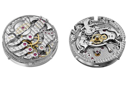 In the mid-2000s, however, with complicated watchmaking in the middle of a roaring comeback, various brands began experimenting with new materials, as well as new methods for producing better volume and better sound transmission. In 2005, for instance, Jaeger-LeCoultre introduced its “crystal gong” system, in the Master Minute Repeater, in which the gongs, rather than being attached to the back of the movement, were fixed to a metal coating on the underside of the dial. The sound of the gongs traveled more efficiently through the crystal, which also acted as an excellent resonator.
