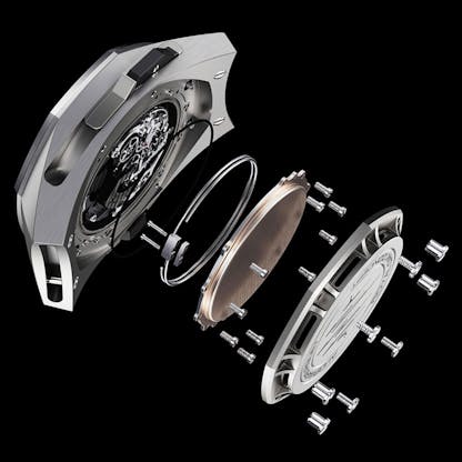 The Audemars Piguet Royal Oak Supersonnerie is built around a similar idea: find a way to improve the resonant characteristics of the case to get better volume and tone. Rather than attach the gongs to the dial, however, AP re-engineered the caseback. The Supersonnerie has a thin, metal membrane – a kind of soundboard – to which the repeater gongs are attached, and which acts as the inner caseback for the watch. An outer caseback protects the resonating membrane, and has apertures through which sound can escape the watch without being muffled by the case material.