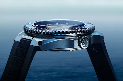 Cases are in stainless steel – a titanium version seems inevitable at some point although the watches are only available in steel at launch – with a titanium inner case ring, which seems to have been a key element in reducing the size of the watch while at the same time maintaining a high level of water resistance, and which may have also had something to do with eliminating the HEV.