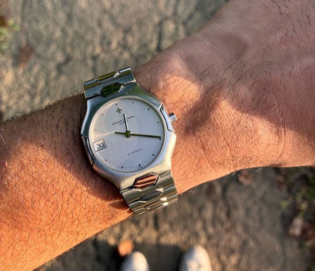 The reference 333 was introduced in 1984 and remained in production for just five years. It retained the integrated bracelet concept of the 222 but replaced its predecessor’s tonneau shaped case with an octagonal one. The design features distinctive cutouts, often referred to as “bites,” at three and nine o’clock, a subtle nod to the Maltese cross that has long defined Vacheron Constantin’s visual language.