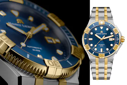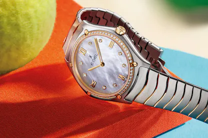 With this infinite range of materials, finishes, and surface treatments, watchmakers express a whole palette of ‘two-tone’ shades, from the simplest and most affordable to the most prestigious and elaborate. There are many contenders in the former category. One pioneer in the field is Ebel. The Movado group’s brand has indulged its taste for the 80s with a decidedly vintage design and virtually systematic use of the two-tone finish, as evidenced in its Sport Classic collection. Prices range mostly from $2,000 to $4,000.